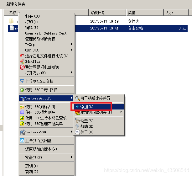 TortoiseGit,然后选择添加,文件显示加号后,再右键文件点击Git提交