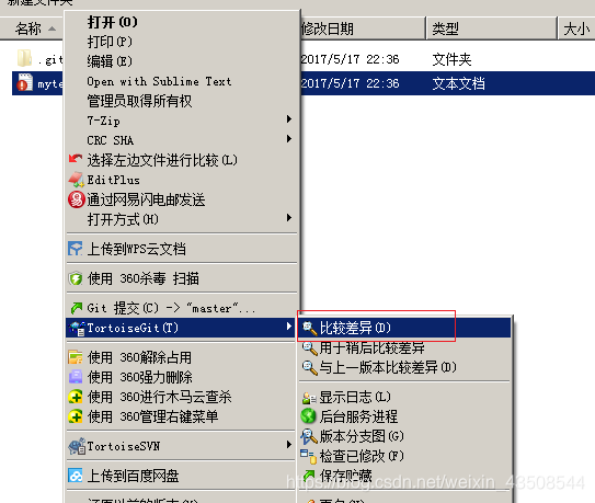 - 若要查看文件与修改前之间的差异,右键